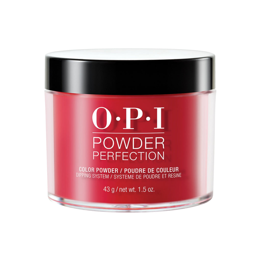 Reinvent acrylic nails with an easy brush, dip, and tap application of OPI Powder Perfection. This new, quick applying, odor-free acrylic alternative promotes a clean-air environment while offering gel-like shine and 2+ weeks of wear without the need to light cure. OPI Power Perfection delivers weightless, natural looking results that are bubble-free and non-yellowing. Non-damaging, soak-off wrap removal. Amore at the Grand Canal is a ravishing red dipping powder. 1.5 oz.Ingredients