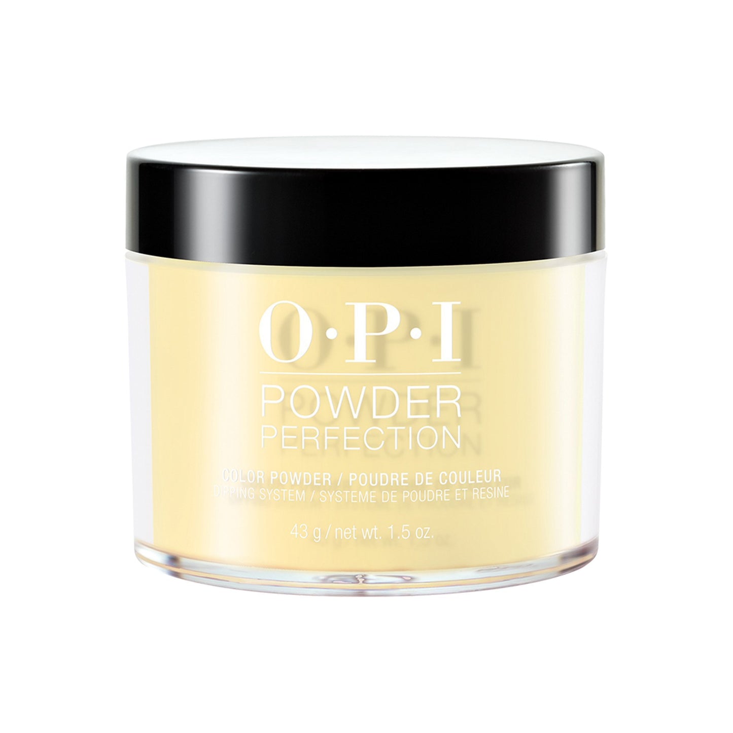 Reinvent acrylic nails with an easy brush, dip, and tap application of OPI Powder Perfection. This new, quick applying, odor-free acrylic alternative promotes a clean-air environment while offering gel-like shine and 2+ weeks of wear without the need to light cure. OPI Power Perfection delivers weightless, natural looking results that are bubble-free and non-yellowing. Non-damaging, soak-off wrap removal. Just take a *peep* at One Chic Chick—a downy soft yellow dipping powder. 1.5 oz.Ingredients