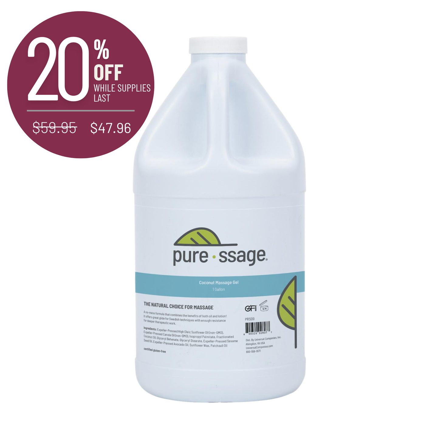 Pure-ssage Coconut Gel offers excellent glide for long extended strokes but allows enough resistance to perform sports or reflexology techniques. With a no-mess application, this massage gel is perfect for a variety of modalities such as deep tissue, trigger point, Swedish, and silicone cupping. It’s also unscented so you can customize it with Pure-ssage Essential Oil Blends! Made in the USA. Certified gluten-free. Paraben-free. Contains coconut oil. No traditional nut oils included. May be made on shared equipment.