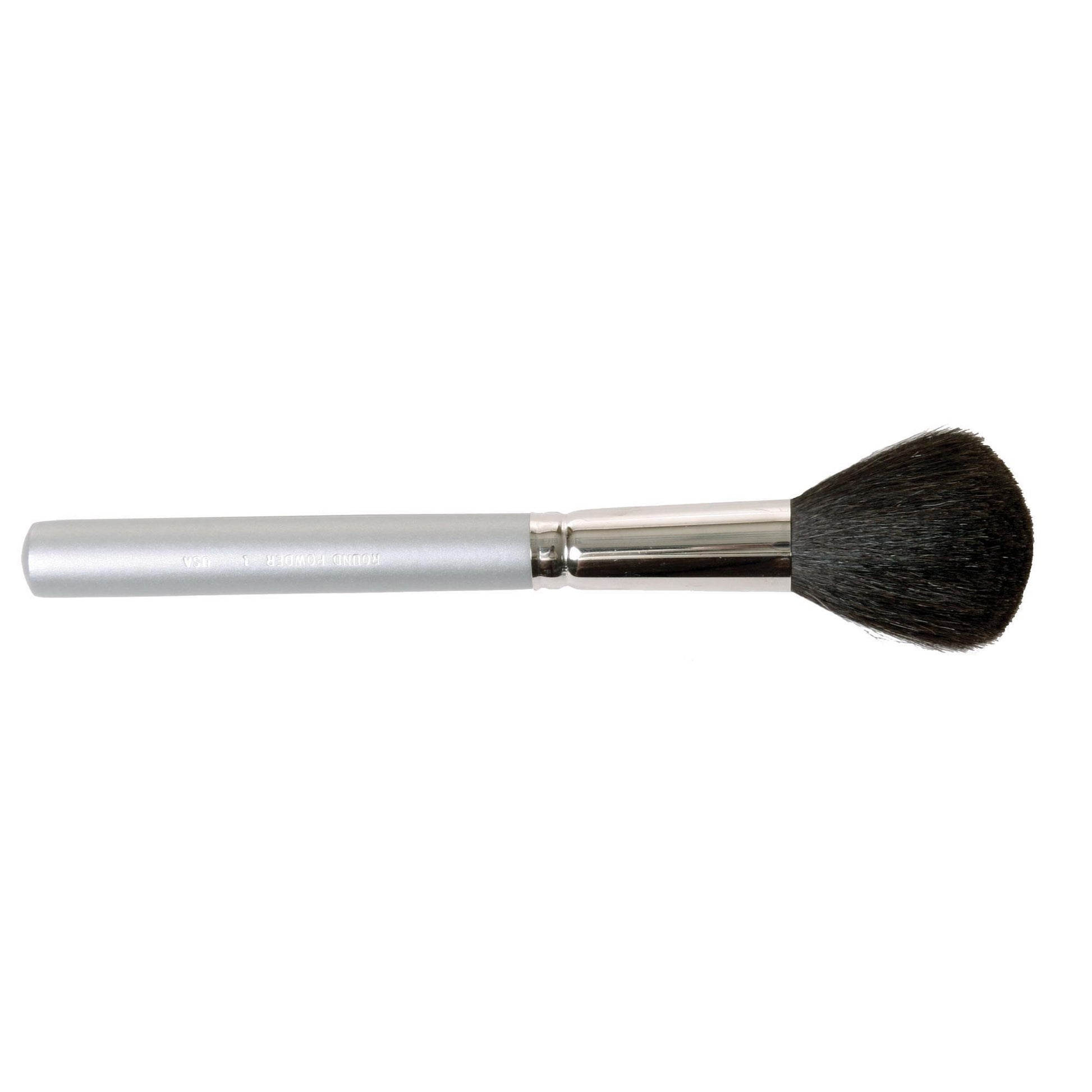 The Round Powder Brush #1 is made of black goat hair for a smooth application and a flawless finish. Designed with the make-up professional in mind, but perfect for retail. Handle labeled with name and number of brush. Solid wood handle with silver matte finish.Purpose and Benefits