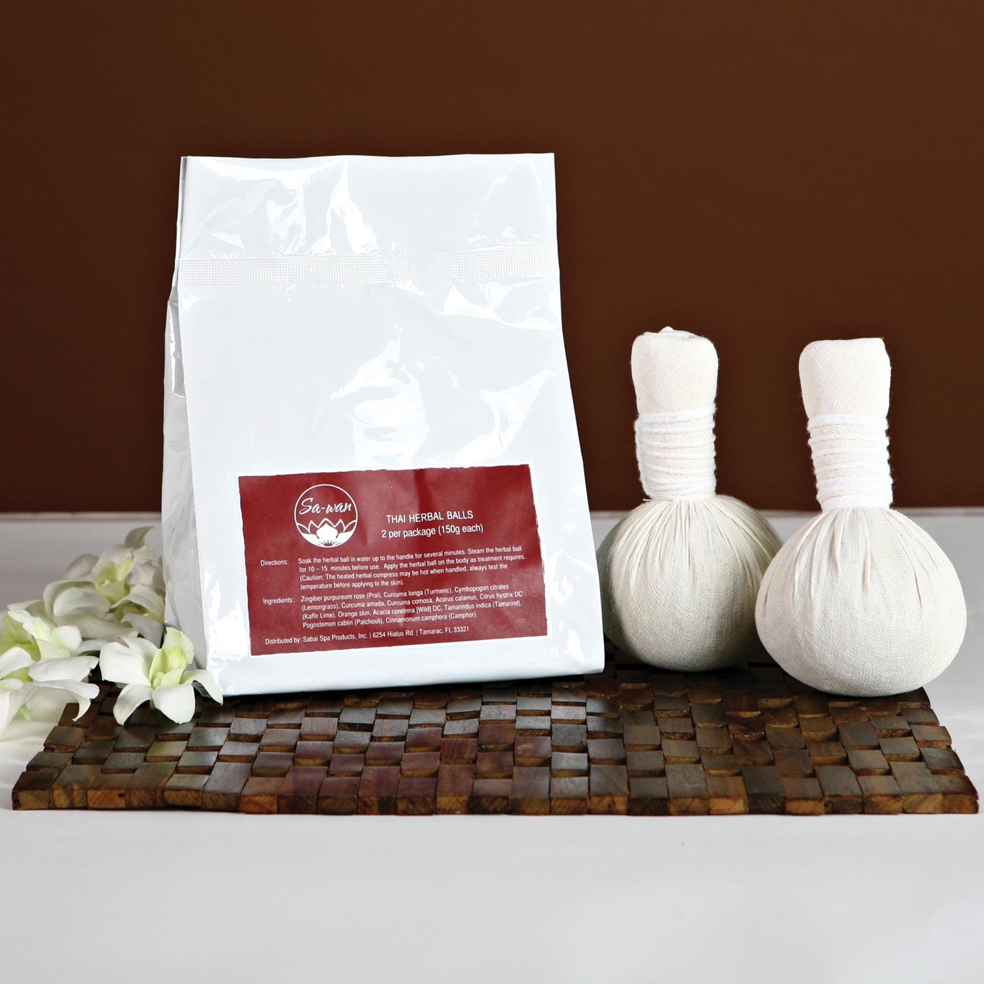 Rooted in the ancient healing traditions of Thailand’s Wat Po Temple, these authentic Sa-Wan Herbal Balls are handcrafted in Chiang Mai and certified by the Thai government for authenticity. Each compress is tightly wrapped in unbleached cotton and filled with a centuries-old blend of aromatic Thai herbs known to ease muscular tension, stimulate circulation, and condition the skin. When gently heated, the blend of lemongrass, turmeric, plai, and camphor releases soothing herbal vapors and warmth that transform bodywork into a truly restorative ritual.