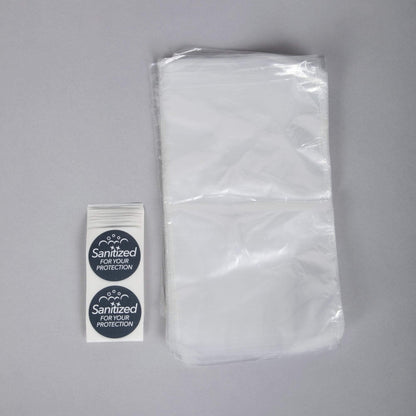 Includes 100 clear bags and 100 labels with the word "Sanitized" printed on it. For use in the locker room areas so the spa can sanitize these items and then label. The customer has to actually break a sealed package to receive their product.Product Class PAR00512