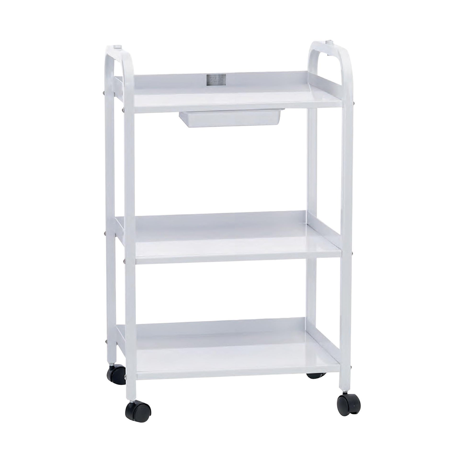 Ensure that your waxing and esthetics services run smoothly by having all your supplies and appliances within reach. This 3-shelf trolley by Satin Smooth has a sturdy metal base that’s a snap to clean. It also has a removable drawer, ample room for spa appliances and supplies, plus a hole on each side to accommodate a magnifying lamp. Caster wheels offer effortless mobility from room-to-room. Some assembly required (tools included).