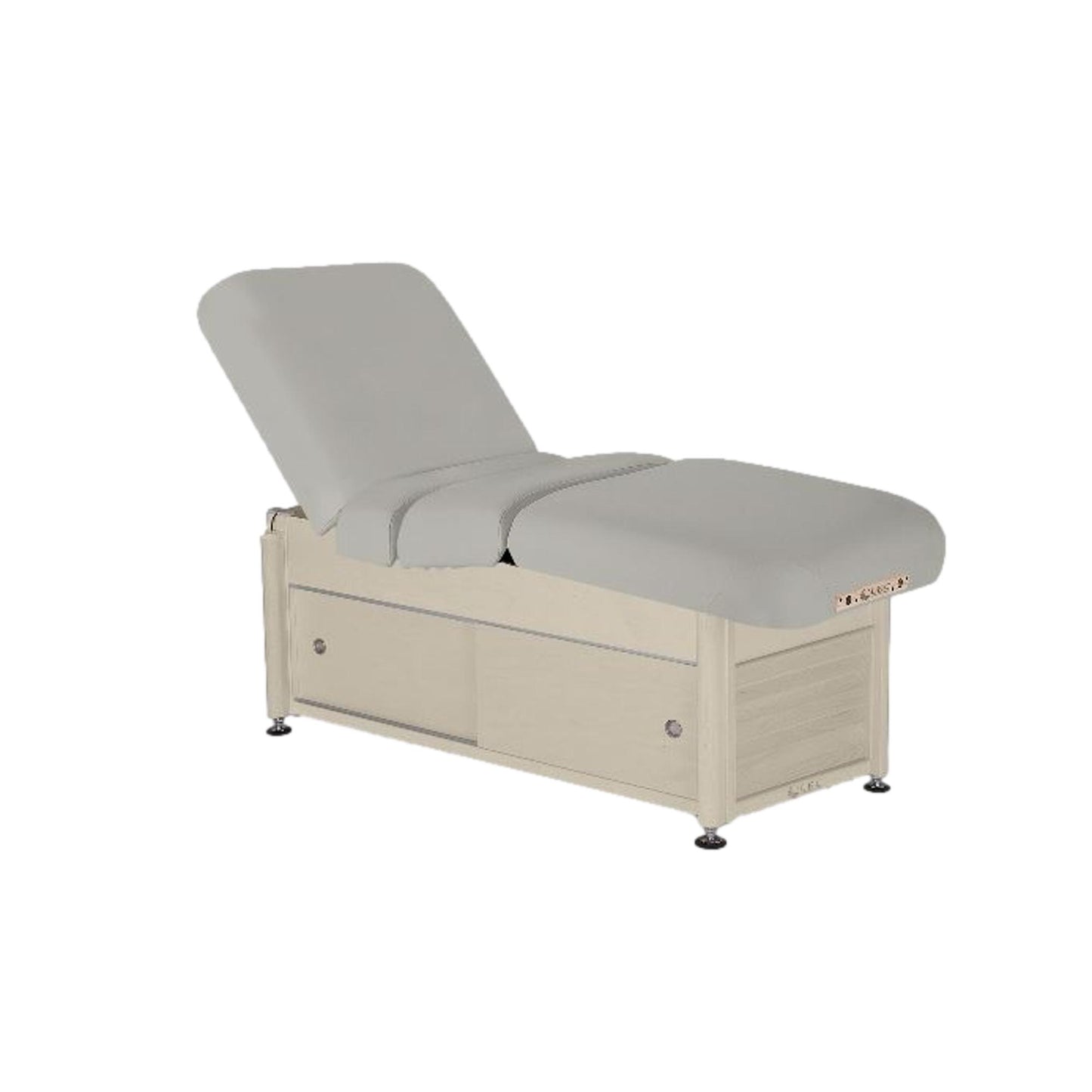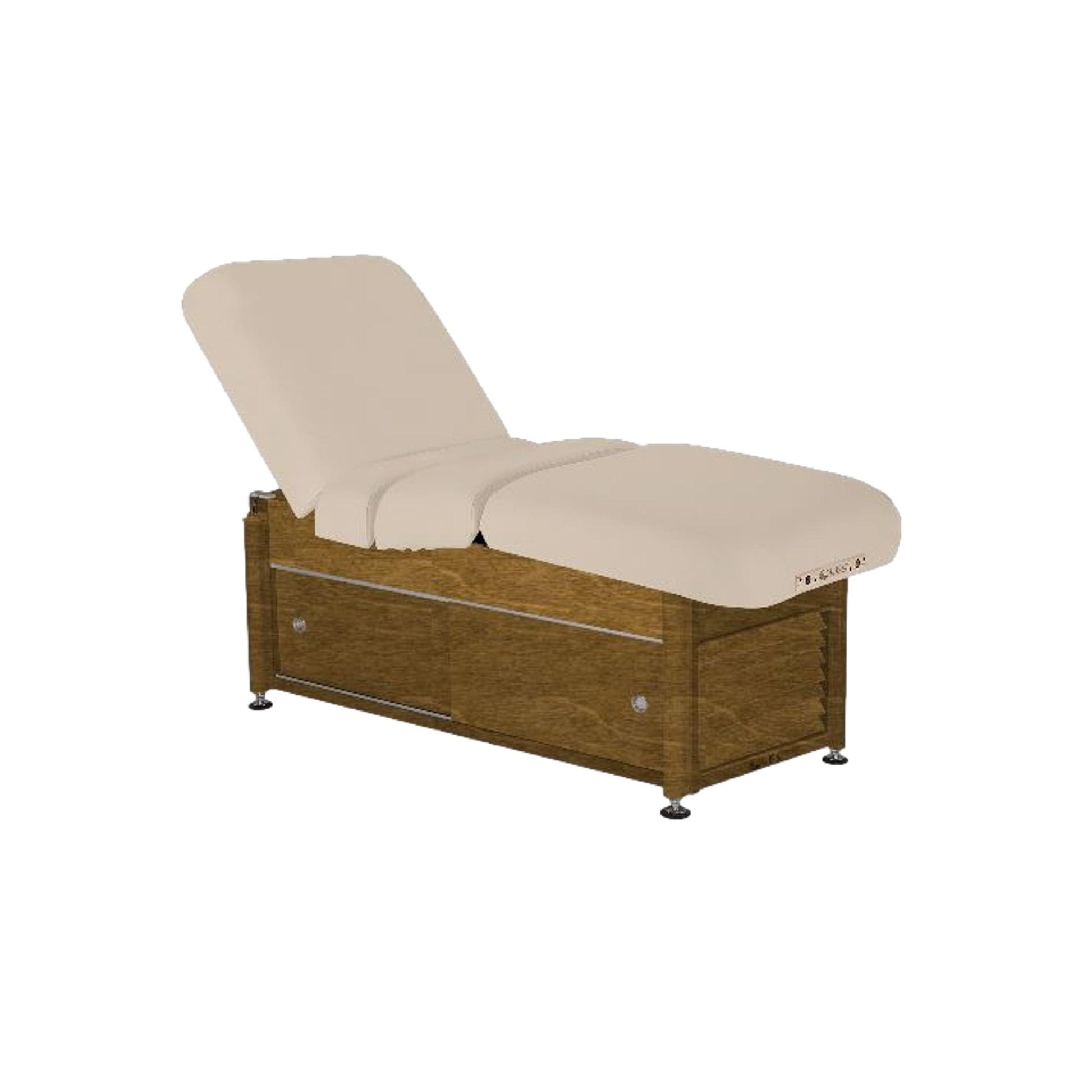 The versatile Serenity™ offers limitless possibilities at an incredible value. Customize to provide massage, facials, manicures, and more — the Serenity delivers elegance, comfort, and reliability while pampering the spa guest. This workhorse table features the strong and reliable Quietech II™ hydraulics that lift and lower the table effortlessly using the heavy-duty foot control. Its ease of use makes the Serenity the obvious choice for today’s busy spas. Standard with a Deluxe Classic Cabinet featuring enhanced designer doors with pulls and louvered end panels. Upgrading to the Pneumatic Assist Tilt or Pneumatic Assist Salon Top allows you to use the hydraulic assisted levers to adjust the backrest and knee portions of the table to infinite positions.