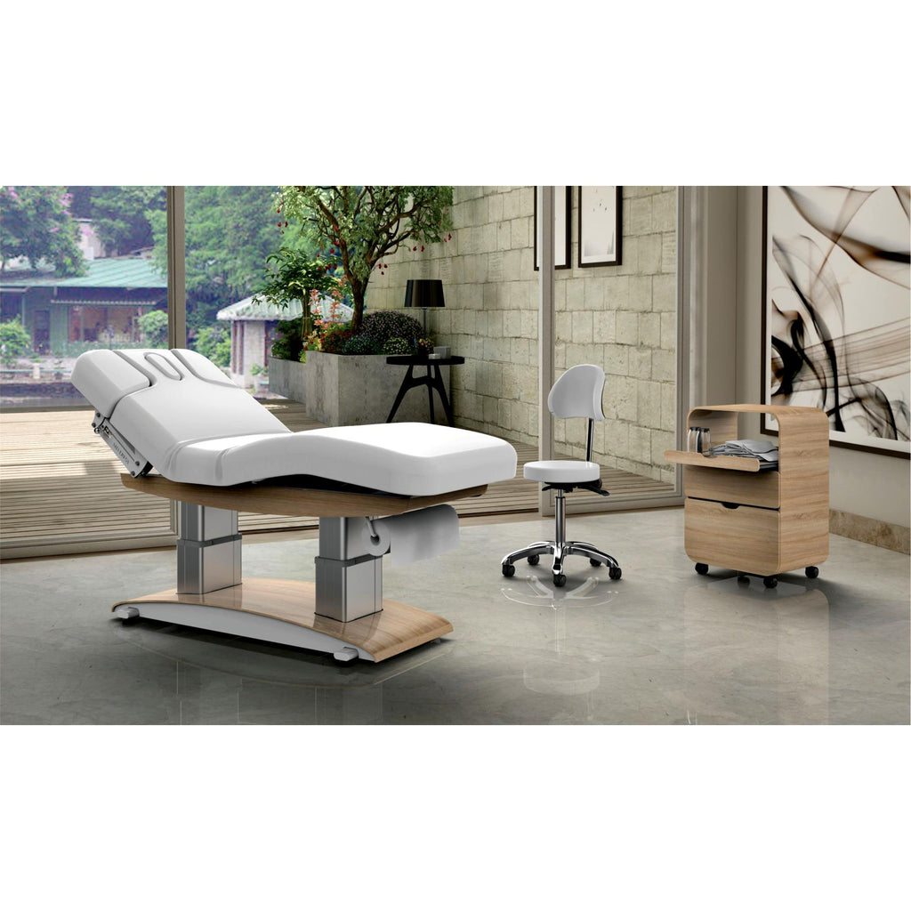 This premium treatment table combines functionality with elegant design, making it ideal for a wide range of spa, wellness, and medical settings. Equipped with four smooth-operating UL Listed motors, it allows for precise adjustment of the table height, backrest, footrest, and tilt. The dual pedestal base enables independent control, including full Trendelenburg positioning for enhanced client care.