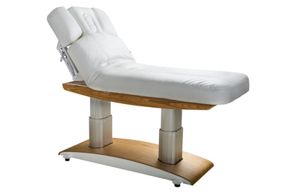 This premium treatment table combines functionality with elegant design, making it ideal for a wide range of spa, wellness, and medical settings. Equipped with four smooth-operating UL Listed motors, it allows for precise adjustment of the table height, backrest, footrest, and tilt. The dual pedestal base enables independent control, including full Trendelenburg positioning for enhanced client care.