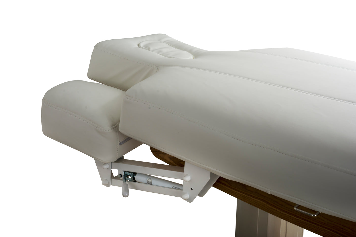 Thoughtfully designed for client comfort, the table features adjustable armrests and a contoured headrest with a facial cut-out, ensuring optimal breathing and neck support in the prone position. Stylish wood accents elevate the overall aesthetic, while the included hand remote provides easy access to all motorized functions. An optional foot control is available for added convenience.