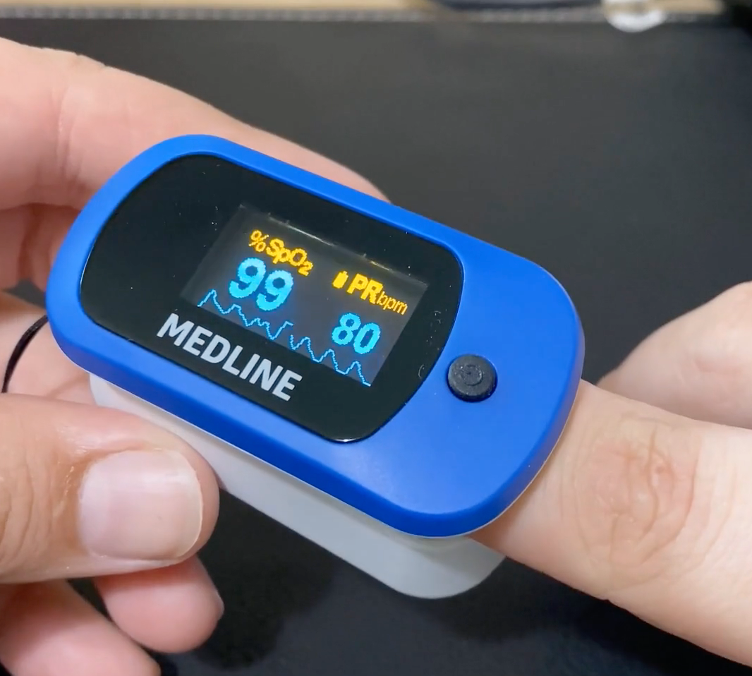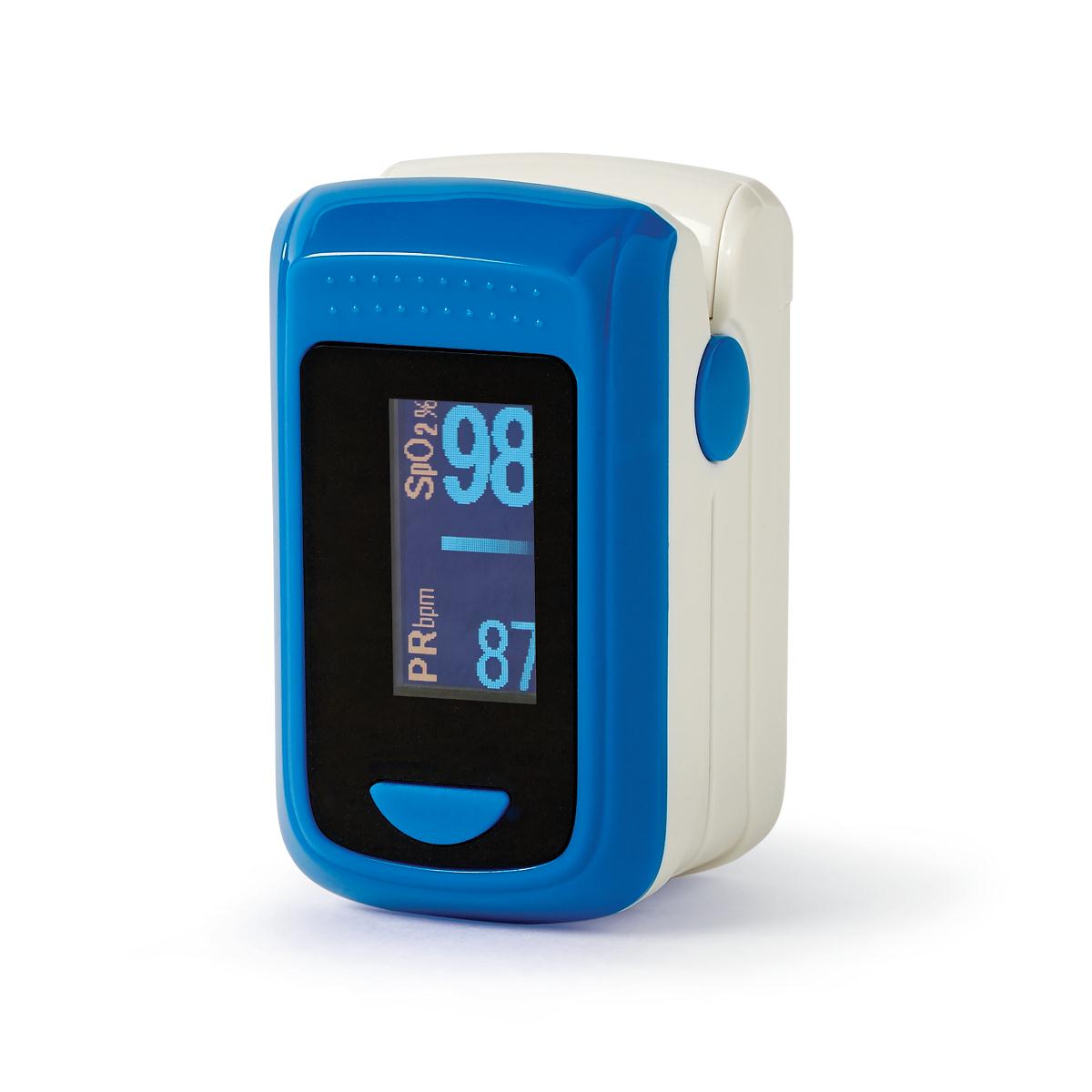This small, lightweight oximeter monitors SpO2 (oxygen saturation) to detect respiratory problems. Its finger clip sensor automatically takes readings when a finger is inserted, and it has soft padding for comfort. Additionally, this oximeter features pulse rate, pulse bar, and plethysmograph. An easy-to-read display allows multiple viewing modes. Suitable for a wide range of finger sizes. Latex-free. 2 AAA batteries included.