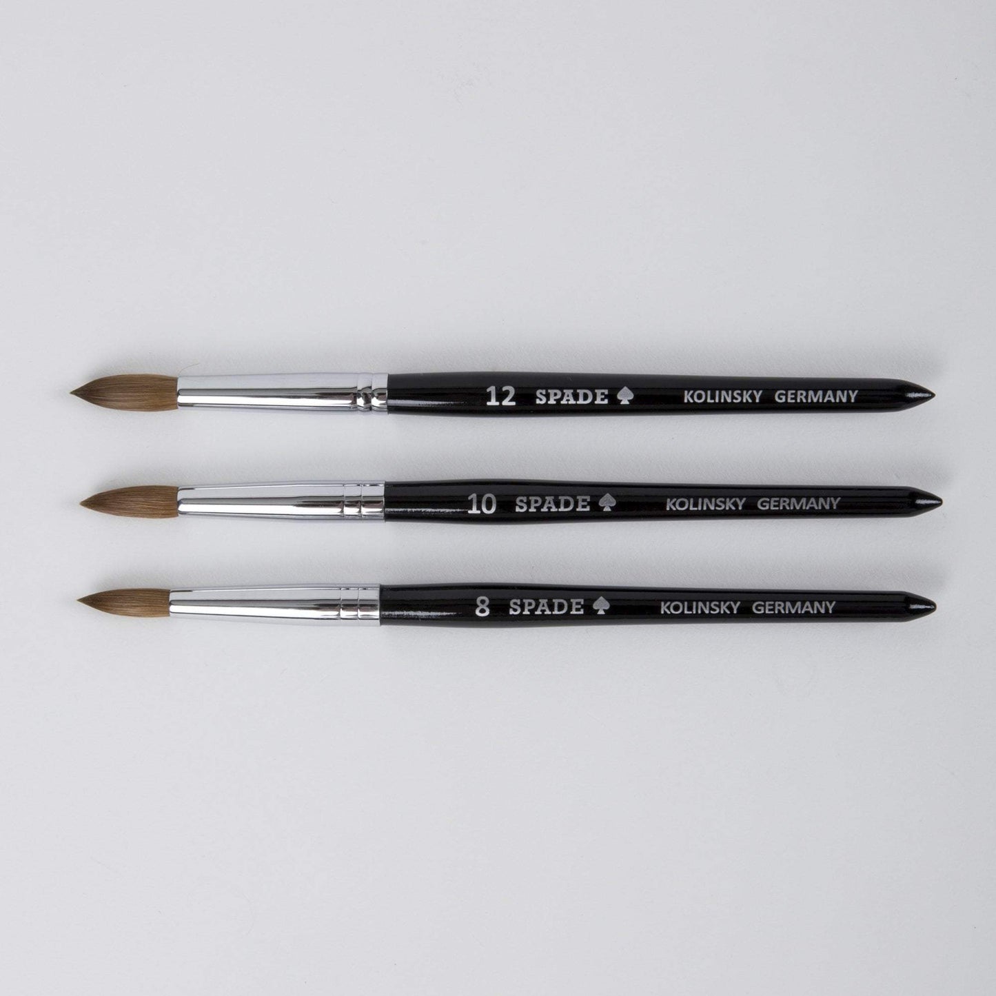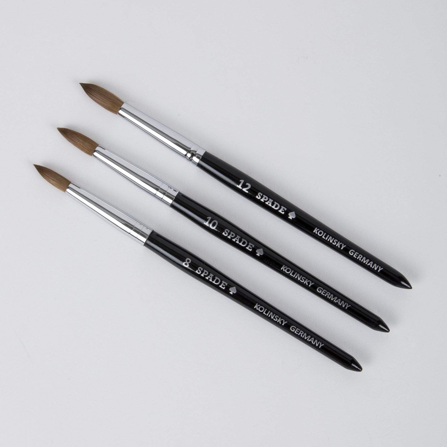 Spade Kolinsky Acrylic Brush, Black #8, #10, and #12