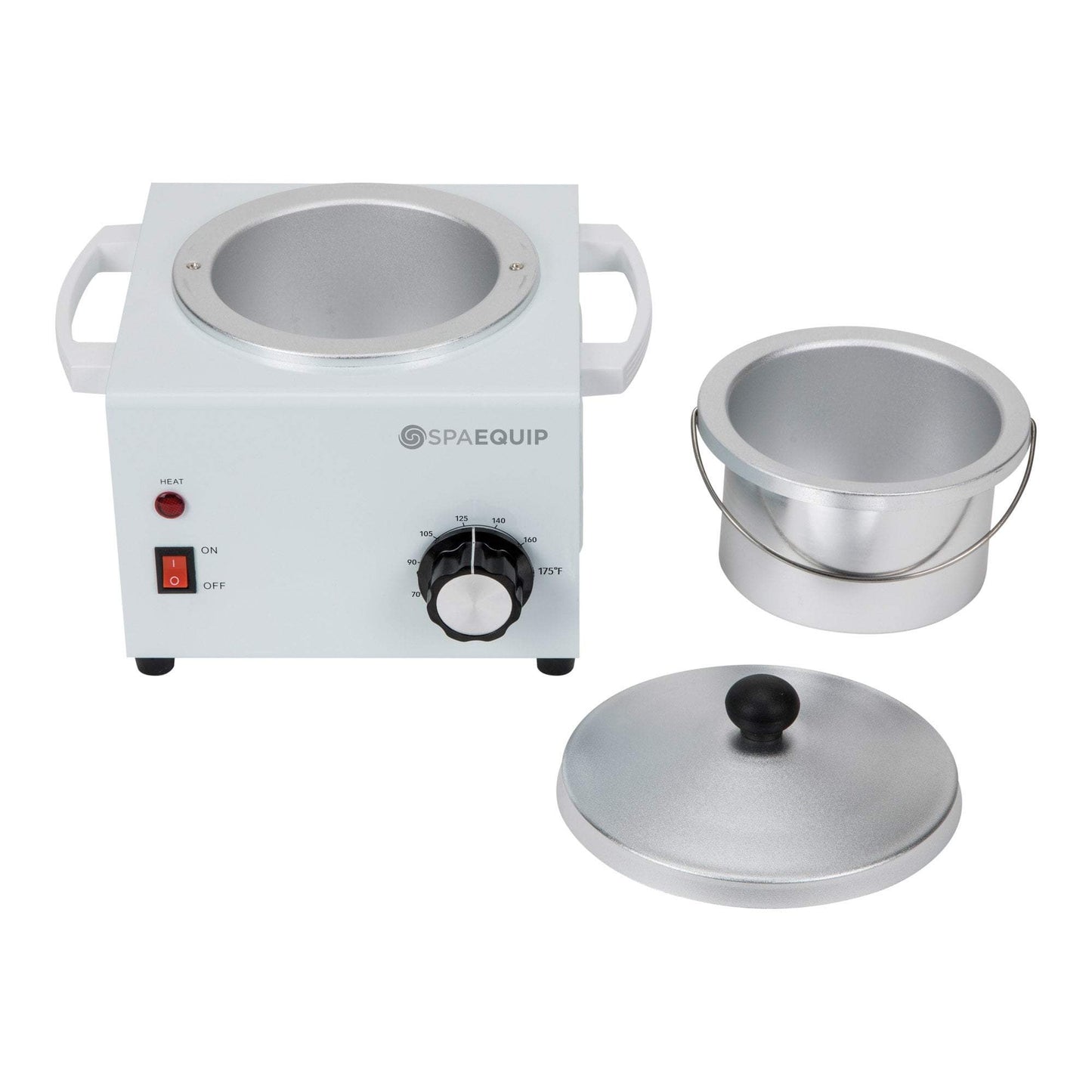 SpaEquip wax warmers hold most brands of wax cans and fit every wax brand that Universal Companies sells. The convenient, removable pots hold can and bead wax and make switching out wax a snap. Precisely heat and maintain the desired temperature with adjustable thermostats designed to heat to a maximum temperature of 176°F.