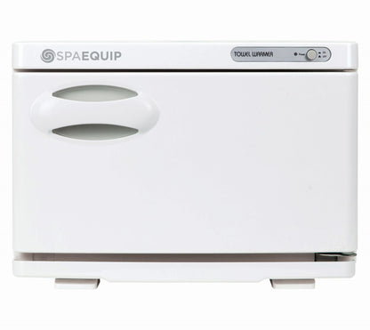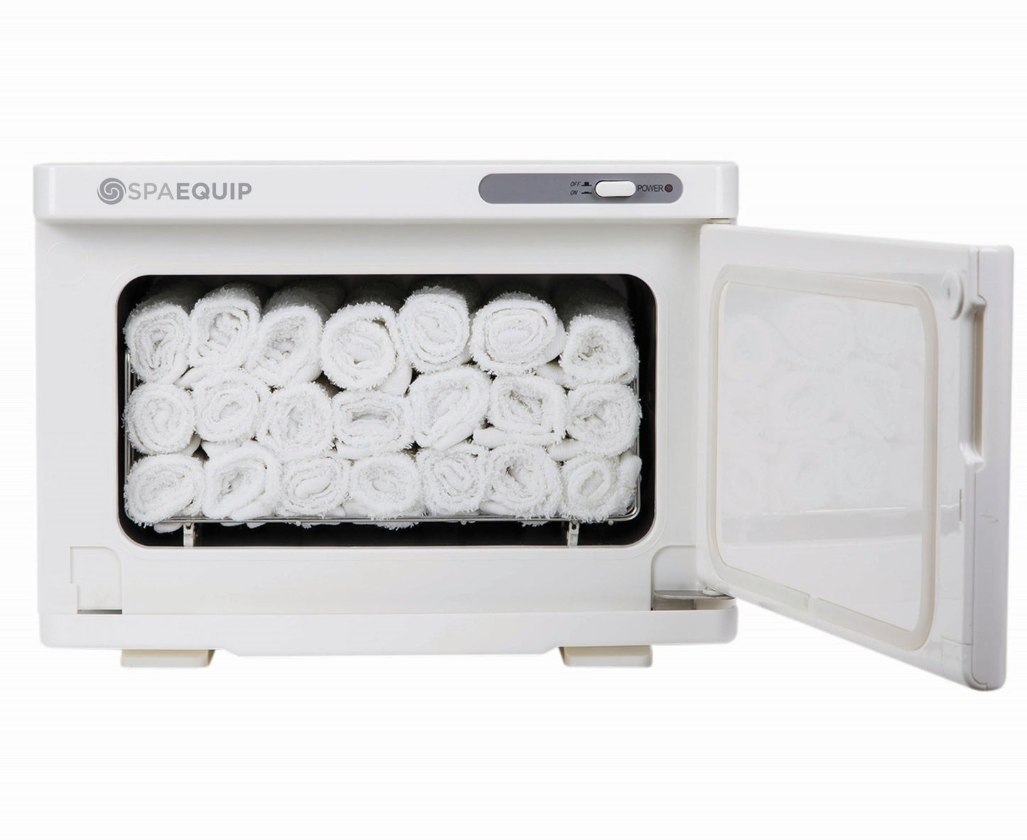 The conveniently sized SpaEquip Small Hot Towel Cabinet is great for supplying moist, heated towels to clients for comfort. It features a wire basket, a 7.5 liter capacity, a door that swings open from left to right, and an average temperature range of 158º-170º F. Holds a total of 6-8 hand towels, depending on towel dimensions; please refer to interior dimensions). Replacement UV bulb is item #CP9052T. White.