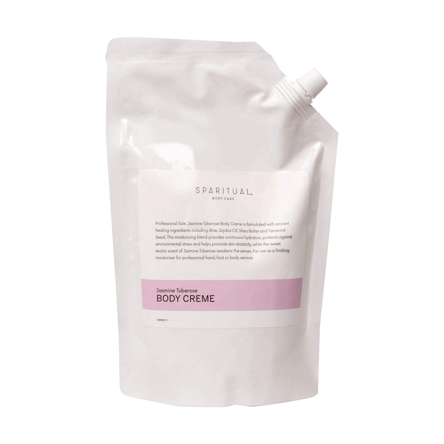 Enrich your clients’ rituals with SpaRitual® Jasmine Tuberose Body Crème. Formulated with a blend of aloe, jojoba oil, shea butter, and tamarind seed to provide continuous hydration and help promote skin elasticity, while the sweet, exotic scent of Jasmine Tuberose awakens the senses. For use as a finishing moisturizer for hand, foot, or body service. Vegan.org and Leaping Bunny certified. Free of parabens, petrochemicals, synthetic fragrances, and dyes. For professional use. 33.8 fl. oz.Ingredients