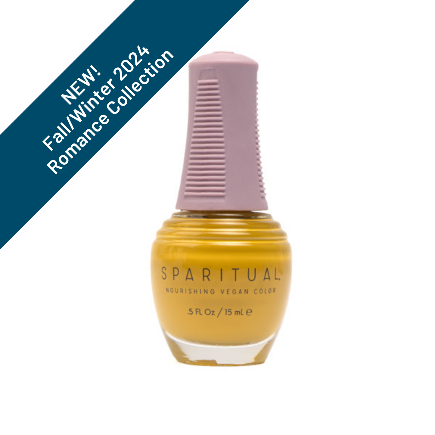 Strengthen, hydrate, and revitalize nails with SpaRitual Nourishing Vegan Color. Advanced oxygen technology produces a permeable layer for hydration balance in the nails, while red tea and seaweed extracts help nails look brighter and healthier. Formulated with adhesion promoters and shine additives, this all-in-one formula contains the benefits of a treatment, basecoat, color, and topcoat. Non-GMO, 100% vegan, and 13-free. Mindful Brush has over 600 bristles that fan out on the nail for maximum control and precise application. Patented Plum Cap provides easy opening. 0.5 fl. oz.