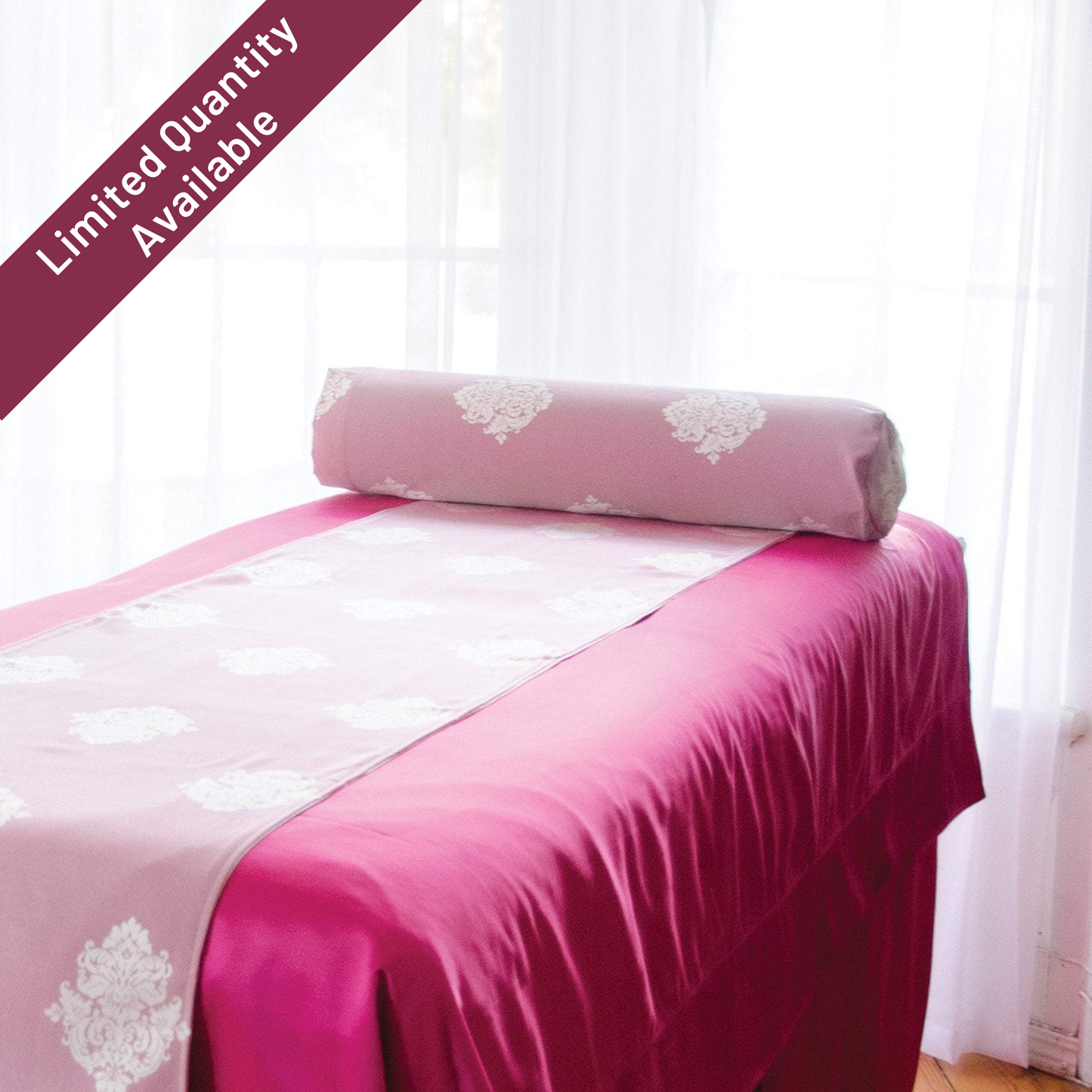 New Lower Price! Rich in color and easy to maintain, the Sposh Damask Bolster Cover comes in a variety of colors and can be mixed and matched with Sposh Quilted Microfiber Blankets, Saddles, and Table Skirts to provide a unique look for your treatment table. 100% Polyester. Machine wash and dry. 6"