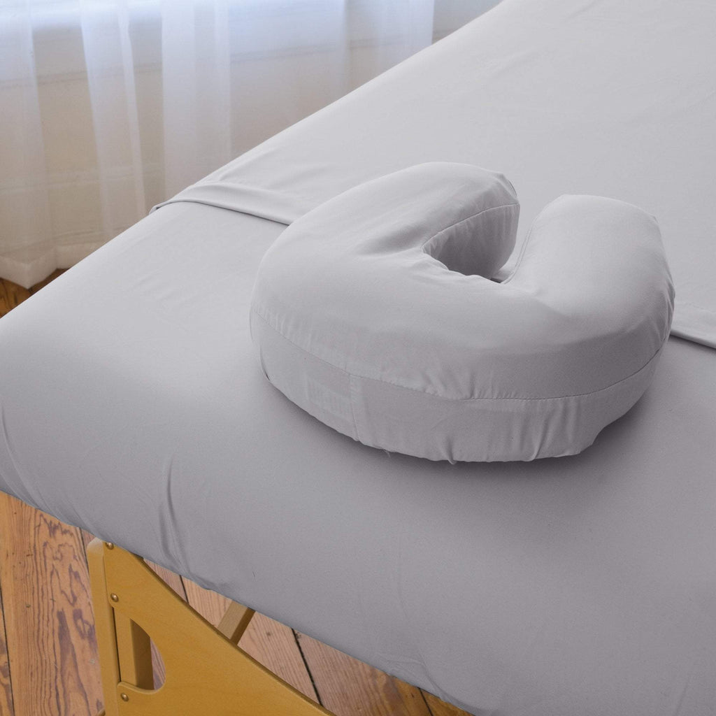 Clients will love the soft feel of this microfiber face rest cover. It launders beautifully and is virtually wrinkle-free when you pull it from the dryer. To ensure it stays in place, it also features elastic. Fits most standard face rests. Machine wash and dry.