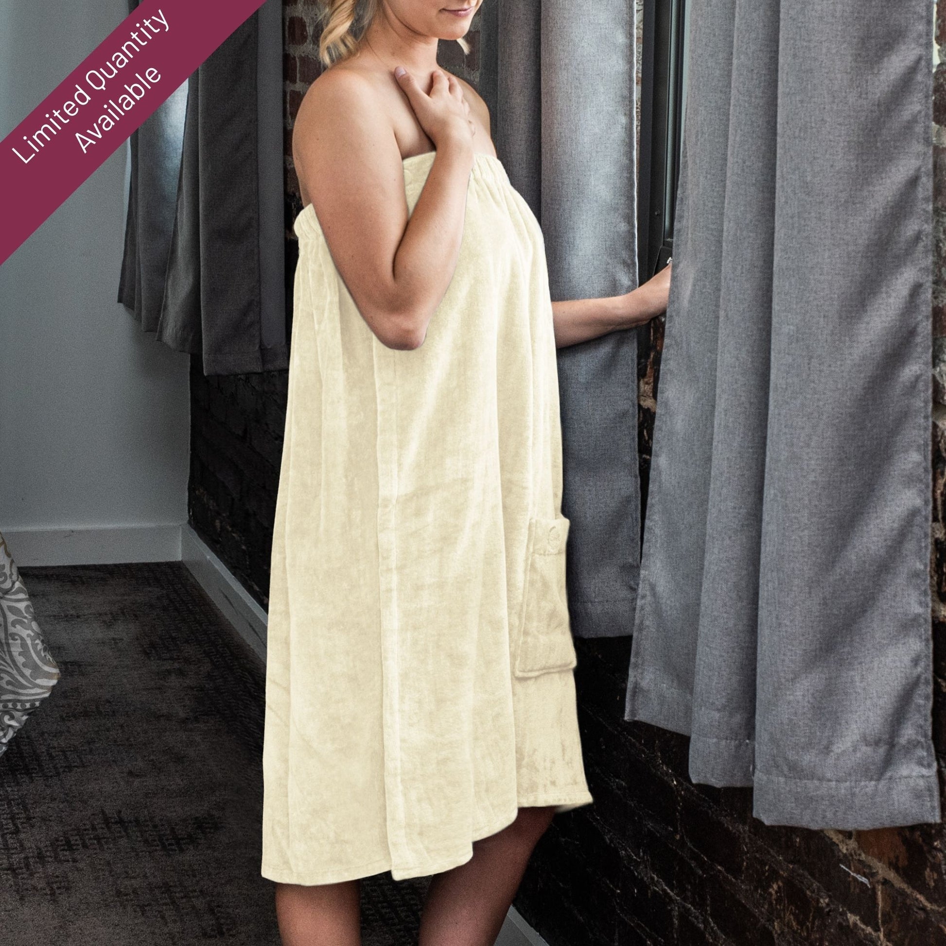 This plush terry wrap is easy to maintain, quick to dry, practically wrinkle-free, and has adjustable snaps for comfort and fit. Available in Dove Gray, Slate Grey, White, & Natural. 100% Cotton