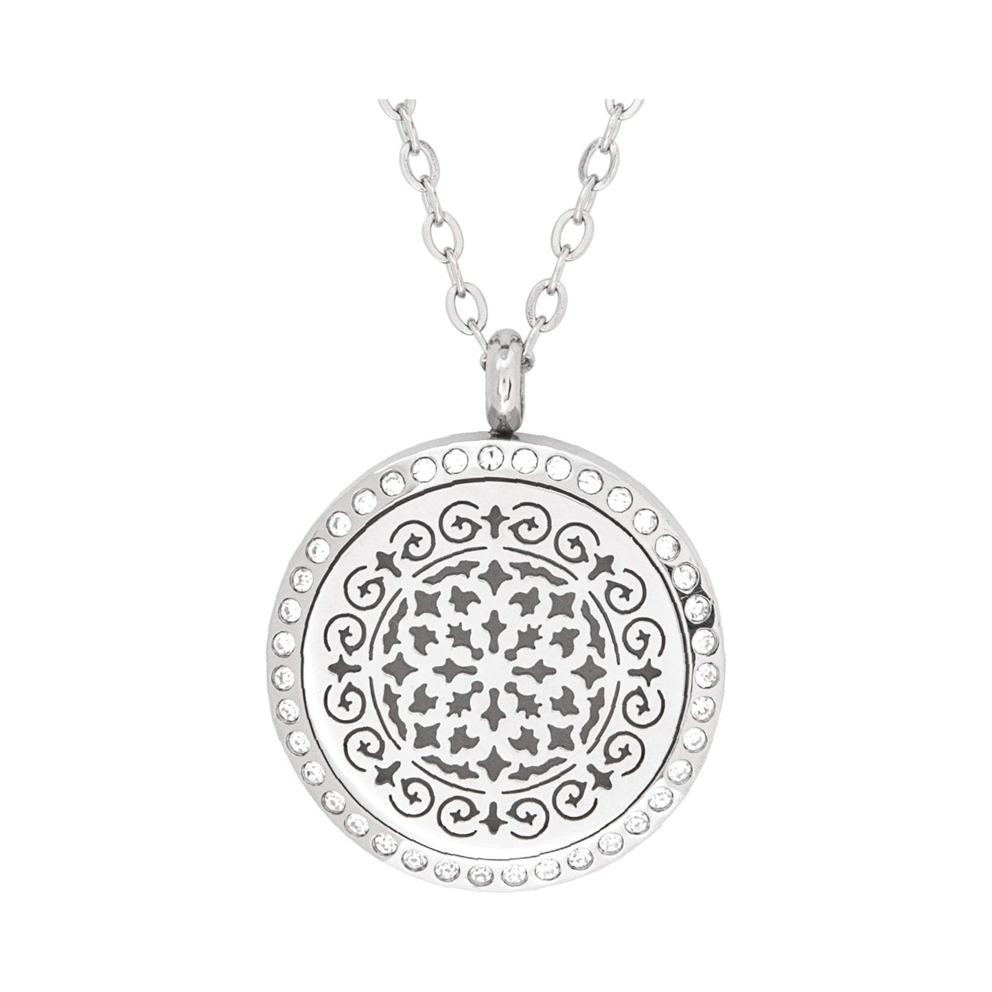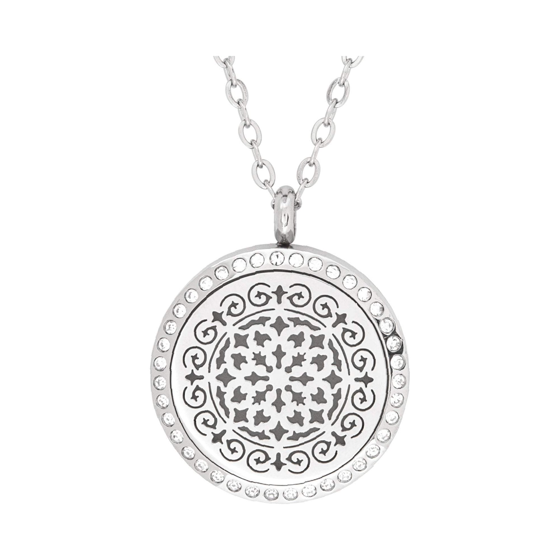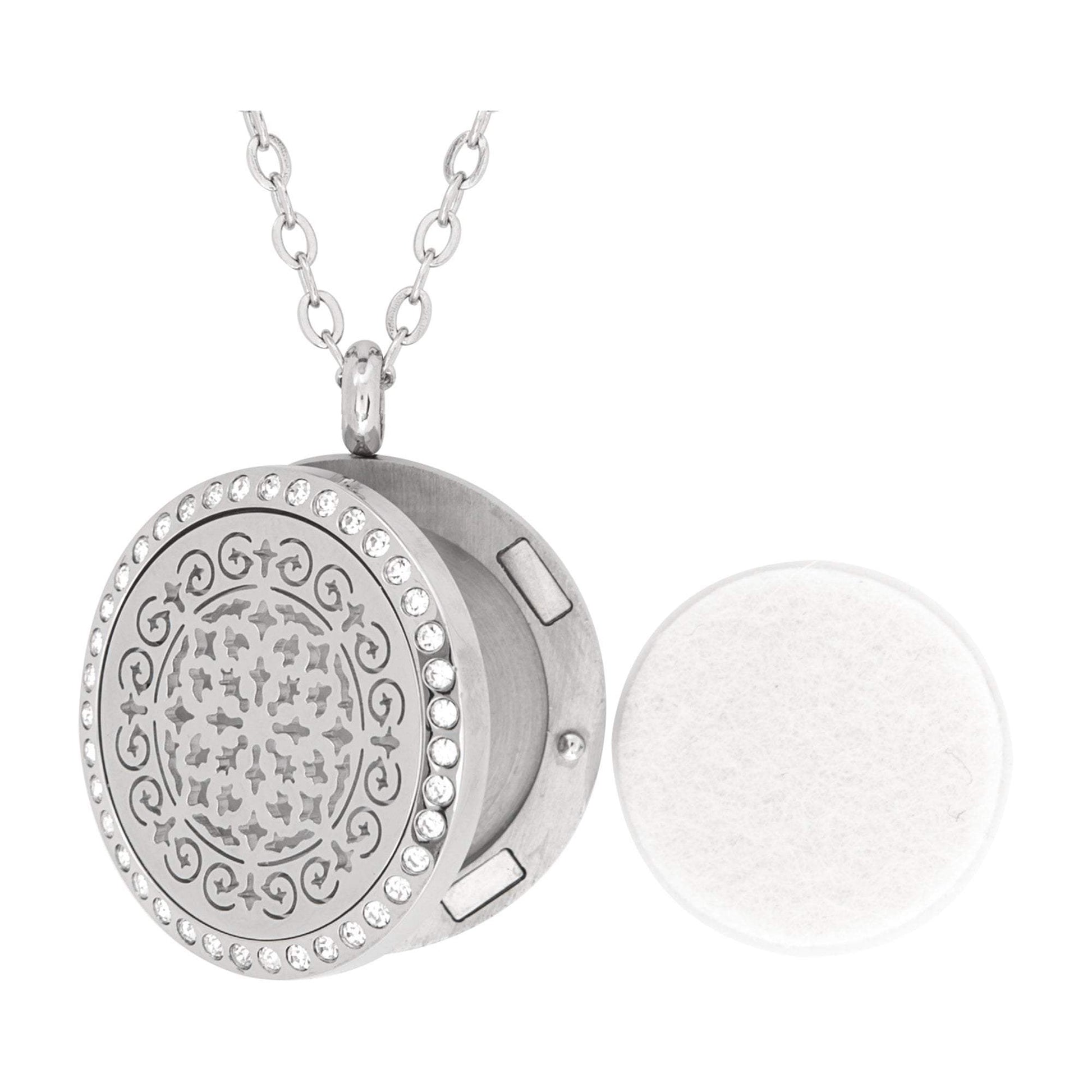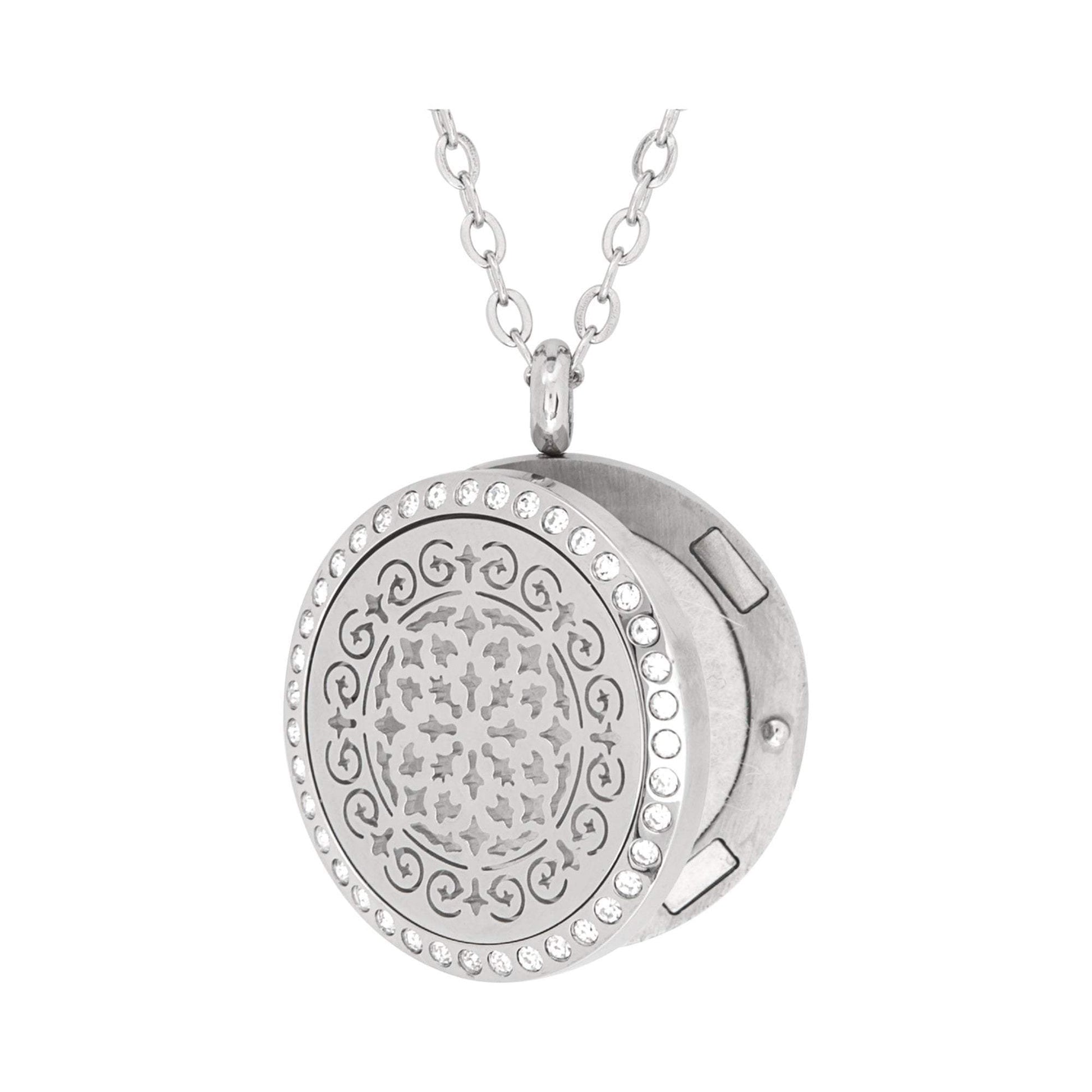 Enhance your retail clients’ overall well-being with the Serina and Company Stainless Steel Siren Crystals Necklace. When an essential oil is applied to the wool pad inside, scent is diffused through vents in the locket, allowing clients to enjoy aromatherapeutic benefits any time and place. This beautifully constructed, high quality locket and chain are both made of surgical stainless steel. Chain is 18"L