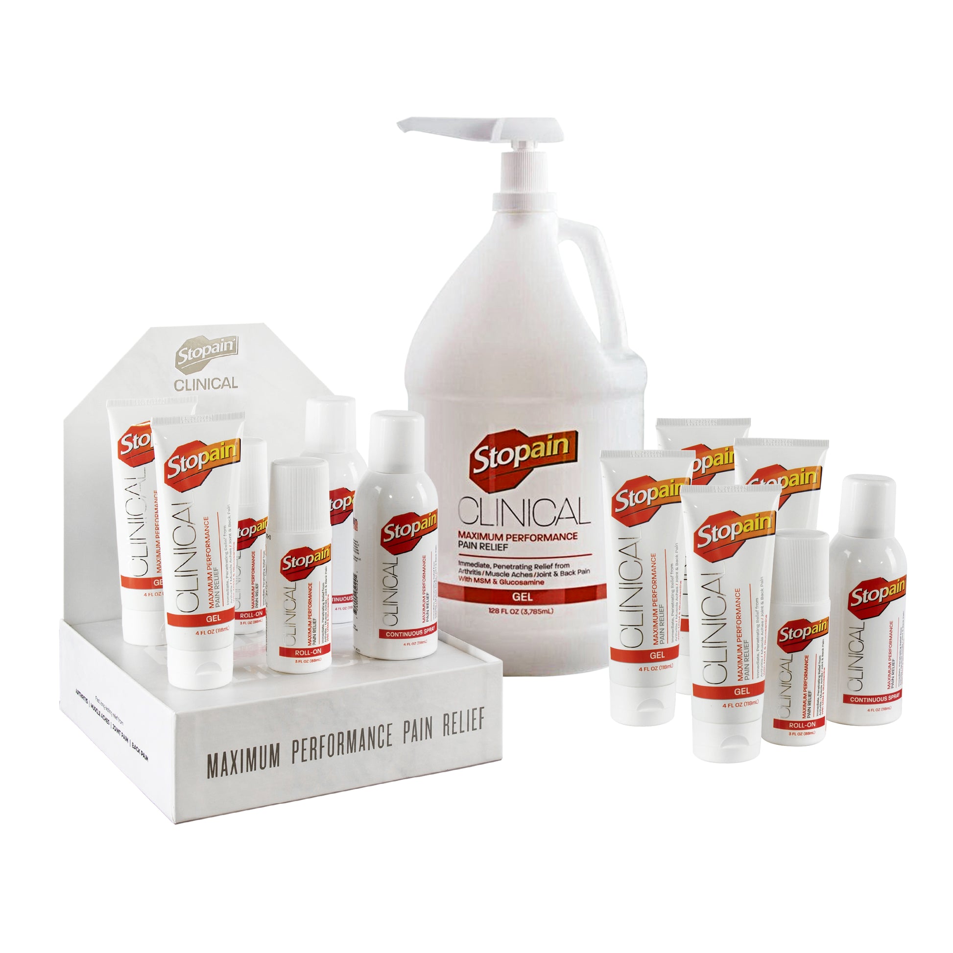 Stopain® Clinical's fast-acting formula delivers fast, temporary relief from minor muscle and joint aches and pains associated with simple backache, arthritis, strains, bruises, and sprains. Formulated with the proven pain-relieving benefits of menthol (10%), it also contains dimethylsulfone (MSM) and glucosamine to support joint health and mobility.