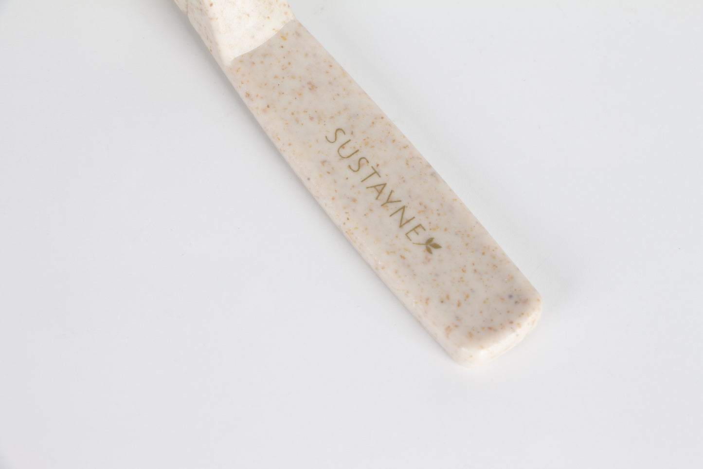 Additionally, by introducing wheat straw into PP, use of conventional plastic is reduced. For instance, Sustayne estimates that for every 3,120,000 wheat straw razors produced, approximately 7 tons of wheat straw is saved from burning and 7 tons of plastic avoided.