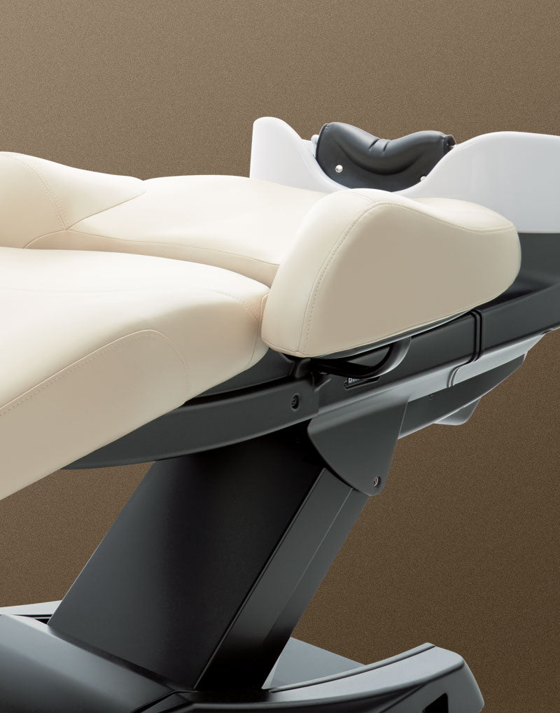 Turn your shampoo bowl into a multi-function area with the YUME Shampoo Unit and create new income possibilities for your salon. With a motorized lift system, your technician can stand and shampoo or remain seated to perform an extended spa for hair treatment. Your customer relaxes in the lounge chair while the head is supported ergonomically. The Yume is perfect for adding the Spa Mist II Steam System (TAK152) to add additional treatment services to your salon and spa. Great for hair masks and scalp detoxifying treatments where the customer will be reclined for an extended period.