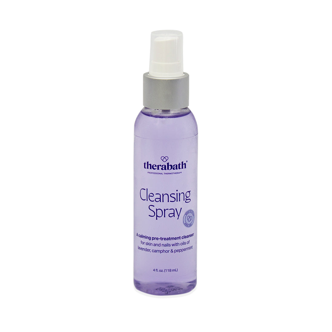 Therabath® Pre-treat Cleansing Spray cleanses the skin and nails prior to paraffin application. Contains oils of lavender, camphor, and peppermint. Available in 4 fl. oz. and 8 fl. oz.