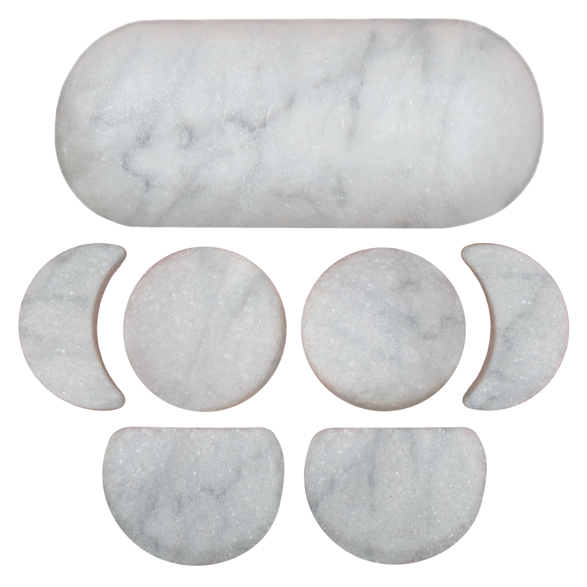 - 7-piece marble set crafted for facial massage, contouring, and contrast