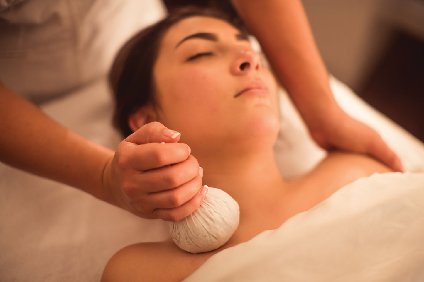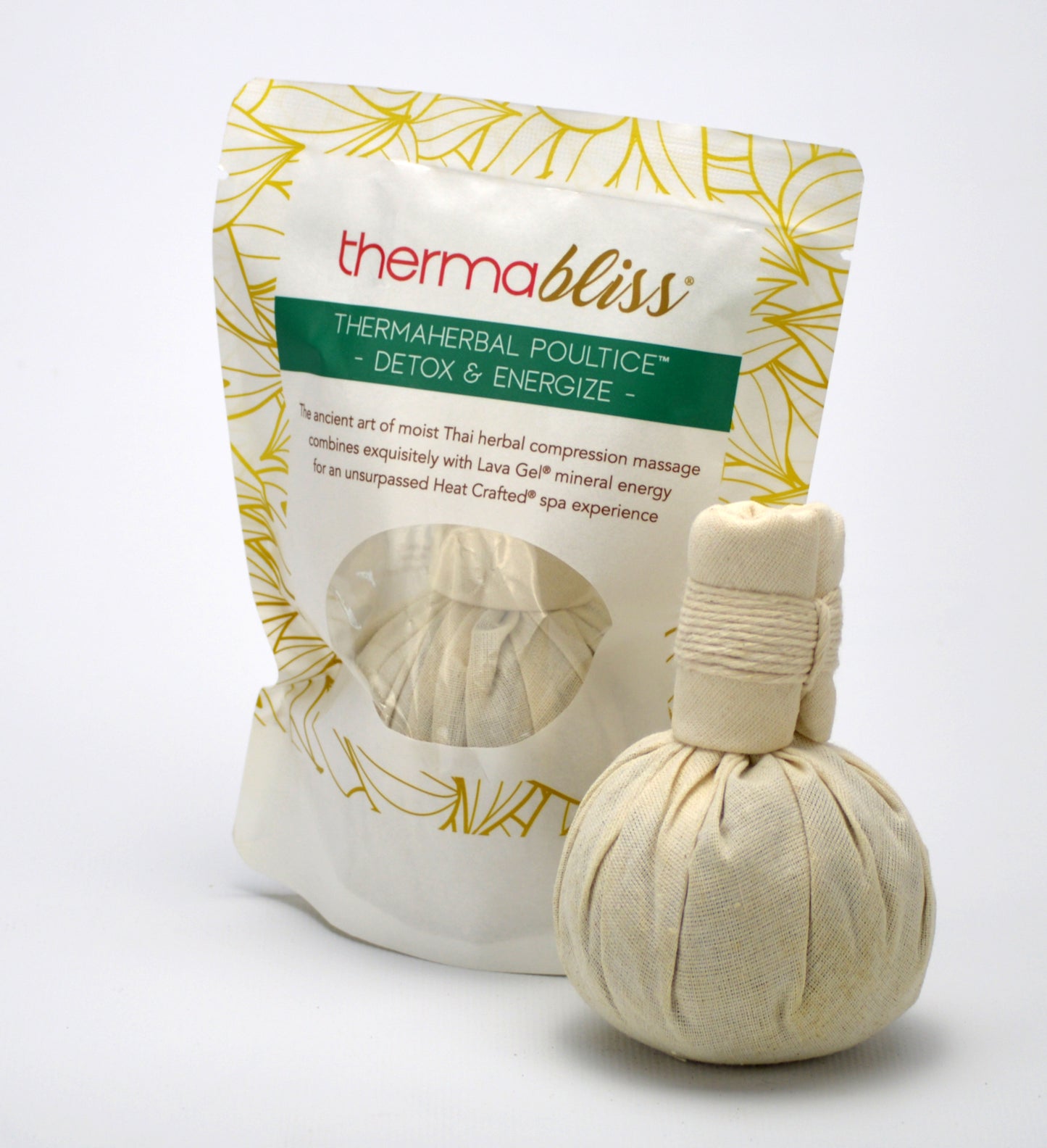 Heat up the treatment room with the thermaBliss ThermaHerbal Poultice™. Long-lasting Lava Gel® mineral heat technology is exquisitely combined with the ancient art of moist Thai herbal compression massage for unsurpassed heat-crafted spa experiences. Sensuous natural herbs, exotic spices, and delicate flowers, all wrapped in fine muslin and steeped, are blended to form a powerful herbal tea elixir.