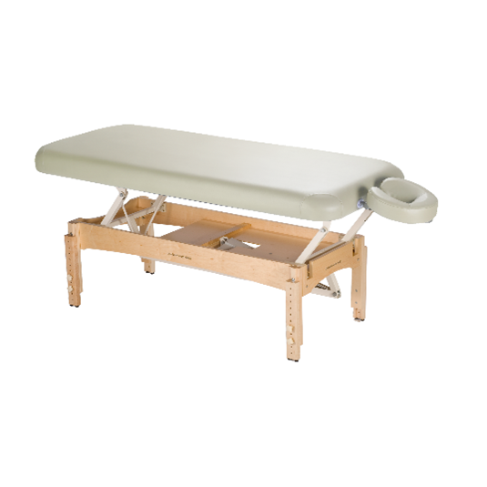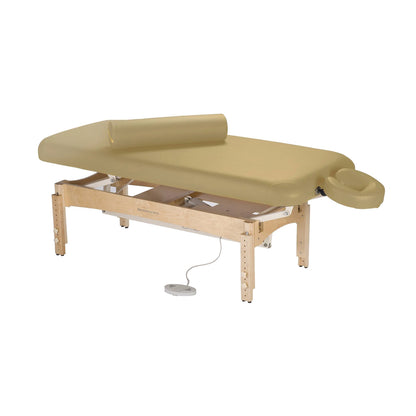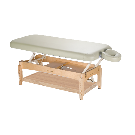 Get the greatest height range available in the industry with the TouchAmerica™ Olympus Electric Lift Table—the affordable alternative to scissor-lift design. The Olympus offers a motorized lift for massage and bodywork. Using a combination of manual and electric height adjustments, the Olympus has a height range of 19"–41" and is fully ADA compliant. UL-recognized components, CE Listed, and CA-117 foam and vinyl. 2-year manufacturer warranty on materials for motors, foam, and vinyl; 5 years on materials for frame / structure.