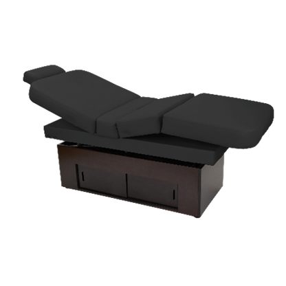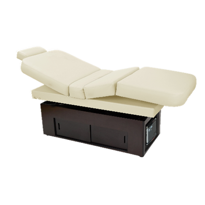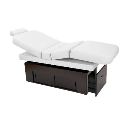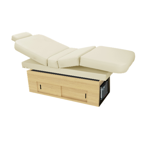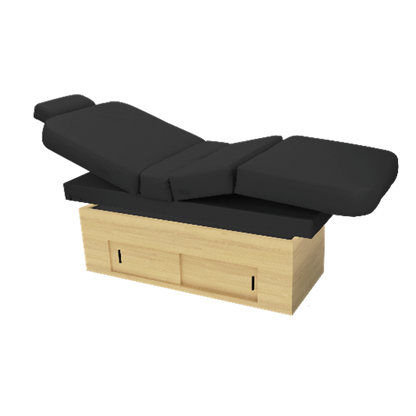 The Sanya is a fully motorized treatment table that offers value, comfort, and durability. Featuring an innovative lift system and combined it with an attractive wood base. We are thrilled with the internal steel frame and geometry of the articulating lift arms. Quiet, push-button top and base adjustments, genuine craftsmanship, and convenient storage space are some of the features you’re going to appreciate. Discover why this elegantly engineered table is one of our best sellers! A great table for multiple treatments including massage, facials, or bodywork treatments.