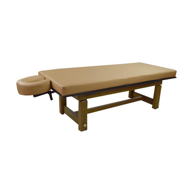 The Solterra Teak Table is a gorgeous table that is at home indoors and out - perfect for use a poolside cabana, at the beach or on a cruise ship. Made from solid teak and polished to a deep, rich color, this table is manually adjustable from 24" to 33" in height. Upholstered with luxurious 3" thick memory foam, and available in 4 colors. Weight capacity of 1000 lbs. Move your best massage outdoors with this solid teak table.