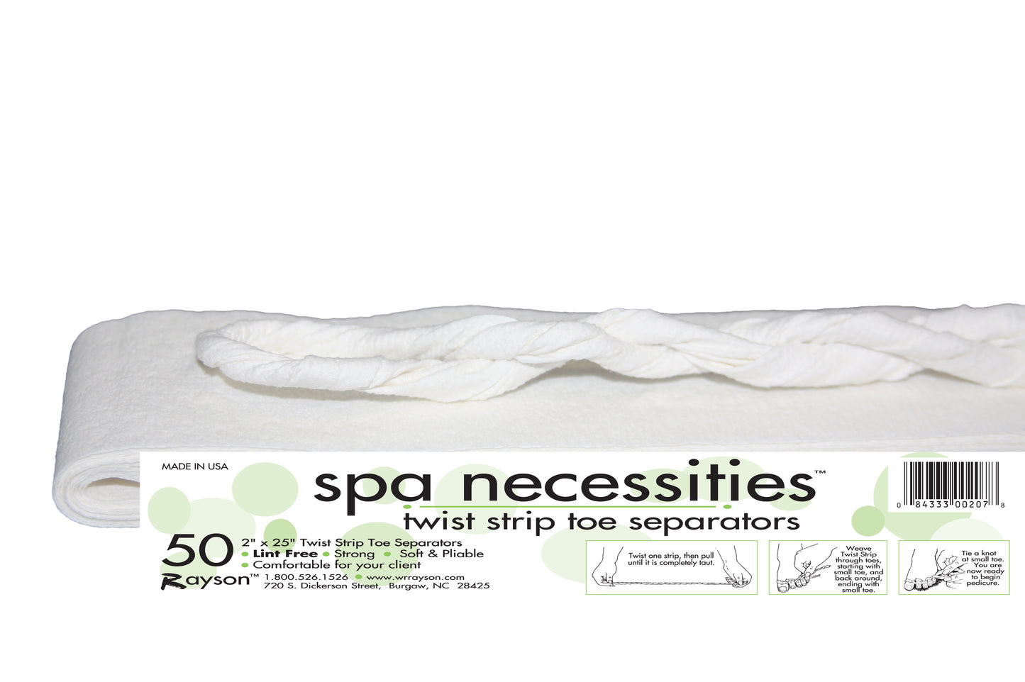 These Twist Strip Toe Separators are for use during pedicures to prevent smudging and to allow easier access to each toe. 50 pack.