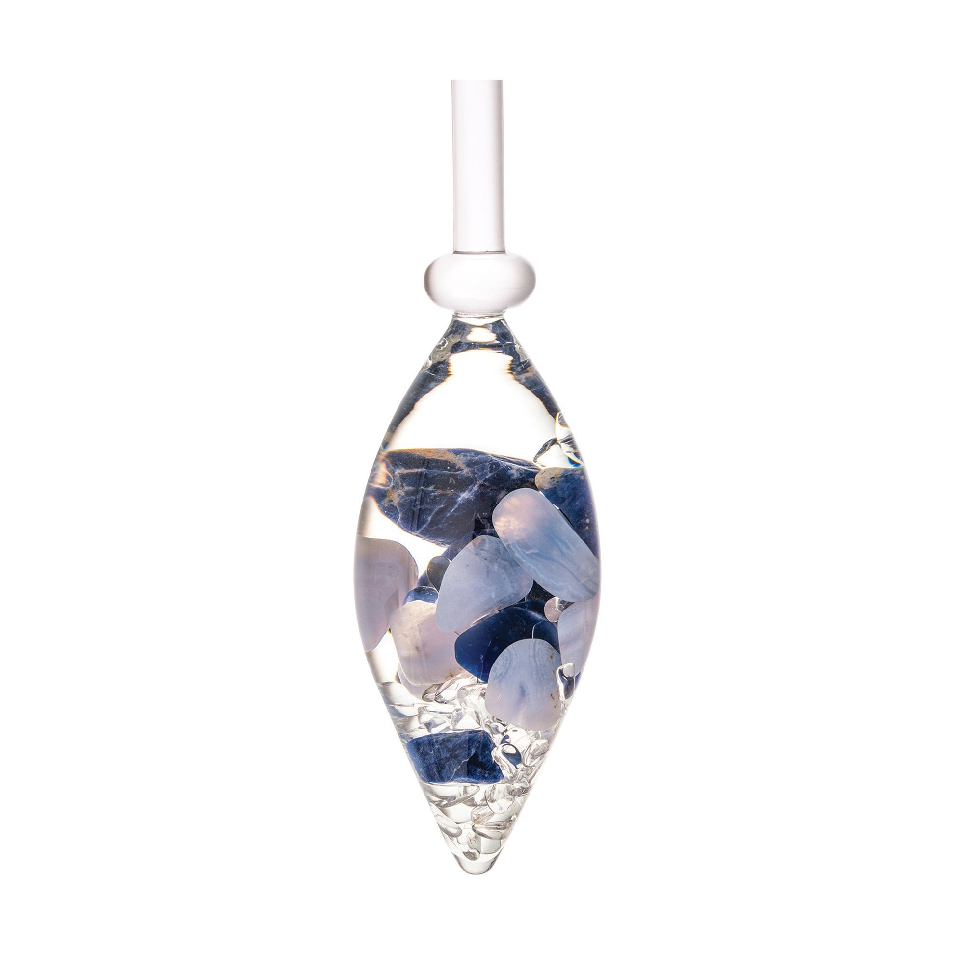 Gemstone Vials are traditionally hand-crafted in a patented, artisanal method by master glassblowers in Bohemia, using lead-free glass and hand-picked gems. Each gemstone blend variation is based on crystal healing traditions.
