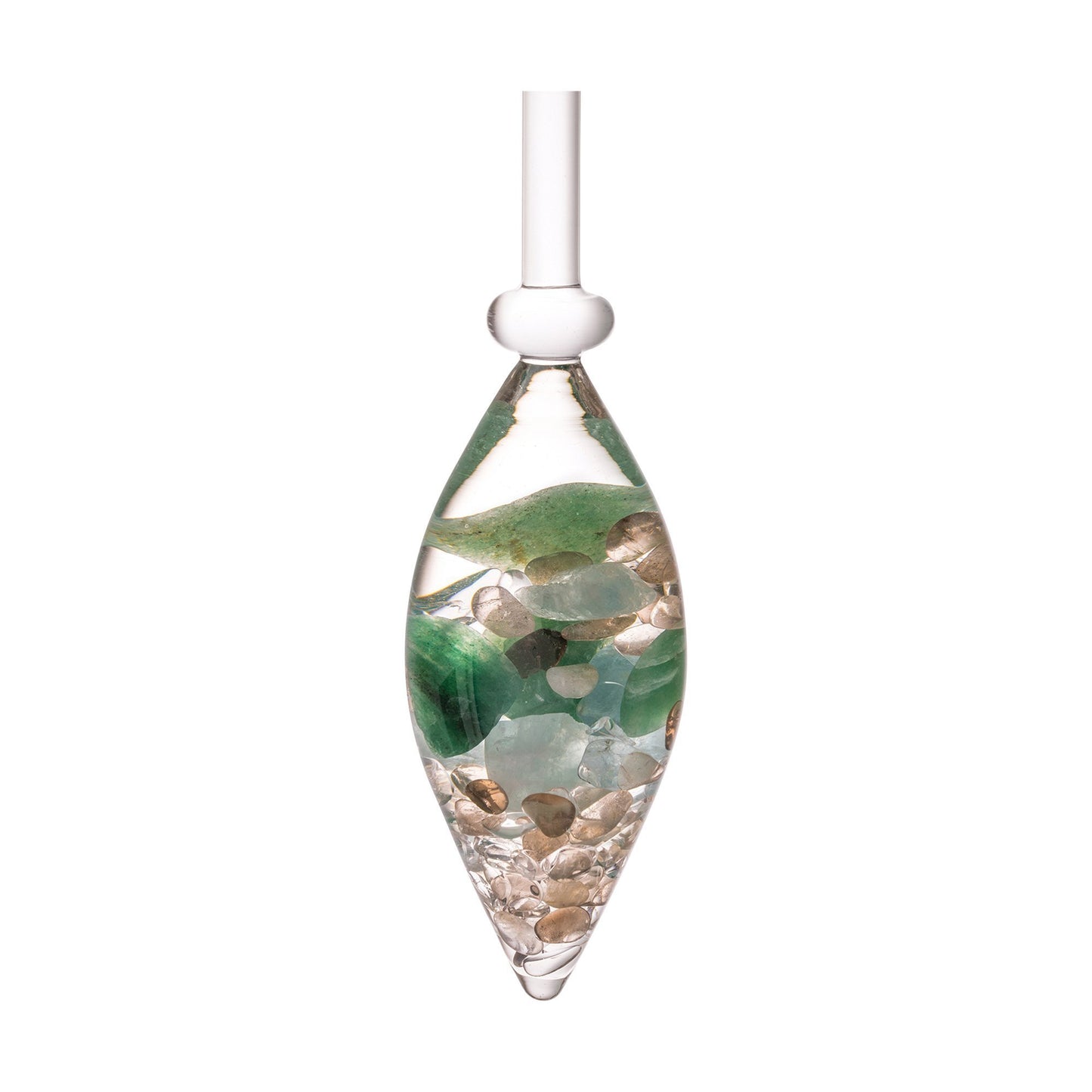 Gemstone Vials are traditionally hand-crafted in a patented, artisanal method by master glassblowers in Bohemia, using lead-free glass and hand-picked gems. Each gemstone blend variation is based on crystal healing traditions.