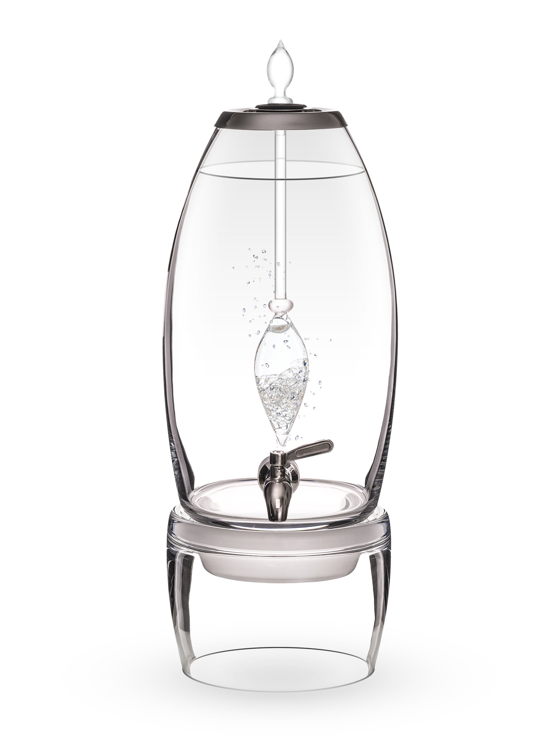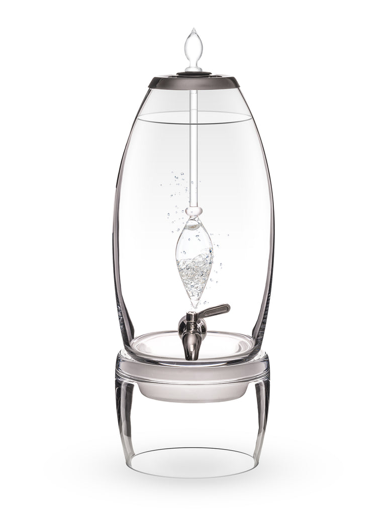 Water on a grand scale. This bundle is the answer to your question about the perfect way to serve water to your spa’s guests: A 2-gallon glass decanter with faucet, lid, and stand plus an original VitaJuwel Gemstone Vial.