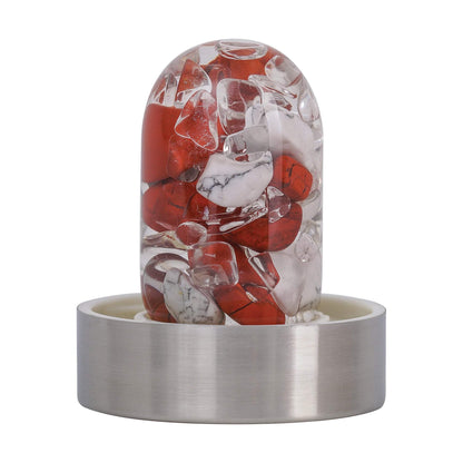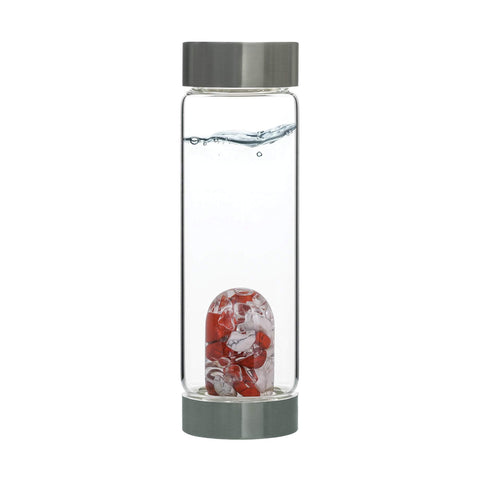red jasper - magnesite - clear quartzViA is GemWater-To-Go. A premium glass bottle with a hand-crafted dome full of precious gems. A modern interpretation of ancient crystal healing traditions. Good for