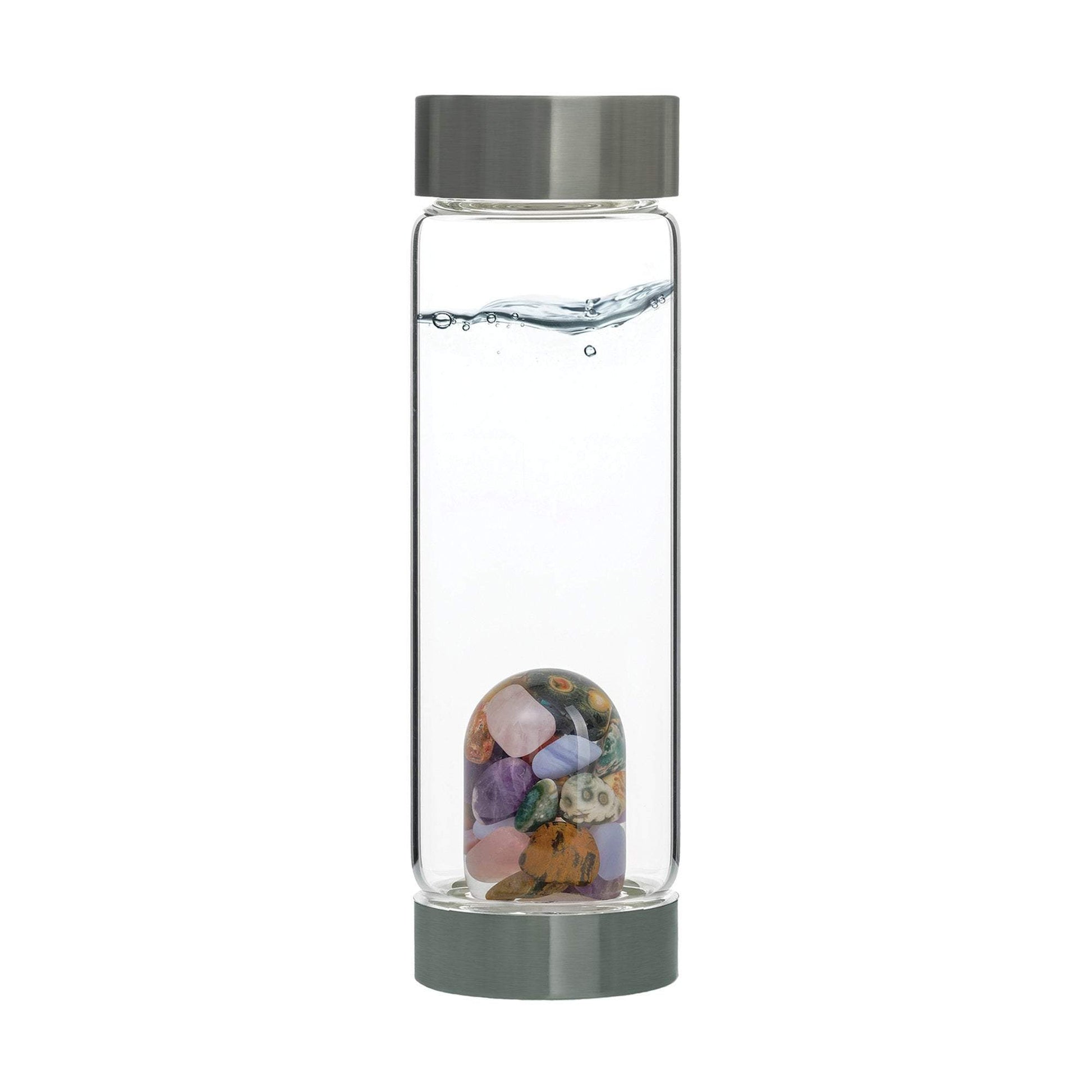 Designed in the German Alps, the VIA bottle features a variety of carefully hand-selected crystals and is made from premium borosilicate, pollutant-free glass. Perfect for everyday use, as the gems are encased in a hand-crafted, interchangeable glass container that prevents any pollution of the water by the gems while preserving all their energetical benefits. The VitaJuwel method relieves clients of bothersome scrubbing and cleaning of the gems. The exquisite stones in your ViA stay bright and shiny over the years.